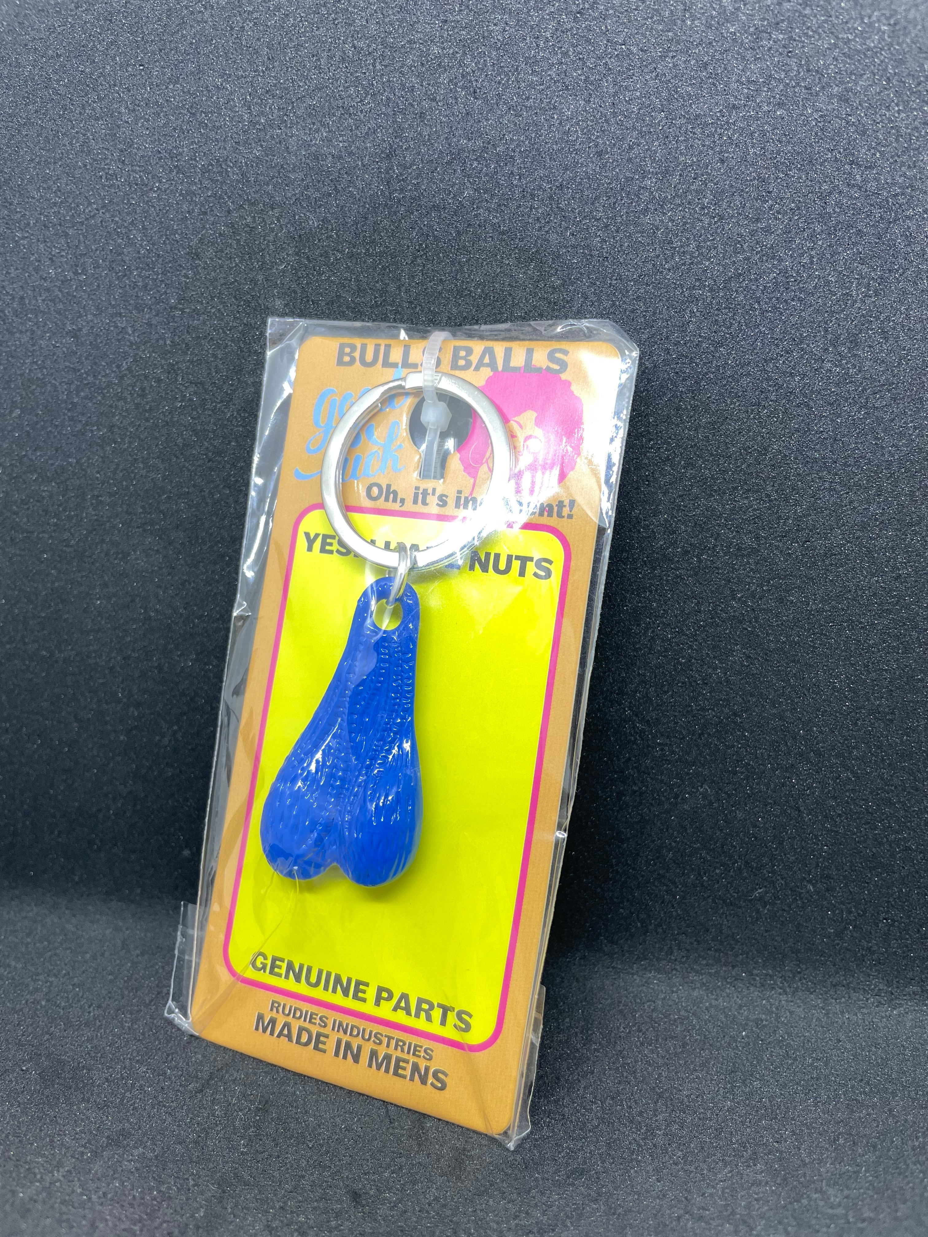 アメリカのラッキーチャーム(お守り)です。欧米では金玉は幸運を呼んでくれるお守りアイテムとして重宝されているそうです。バイカーやドライバーが牛の睾丸『BULLS BALL(ブルズボール)』を象ったキーホルダーを危険から身を守る、アダルトでシャレの効いたお守りとして愛用されているそうです。事故っても金玉を傷つけませんように!と願いを込めて持っている人も多いそうです。
